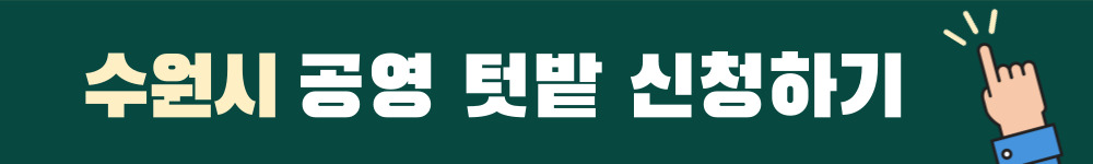 | 수원시 공영텃밭 | 2/10 - 2/20 | 4/1 - 11/30 | 개인(250) | 30,000원 | 추첨 | 인터넷(수원시청 홈페이지) |