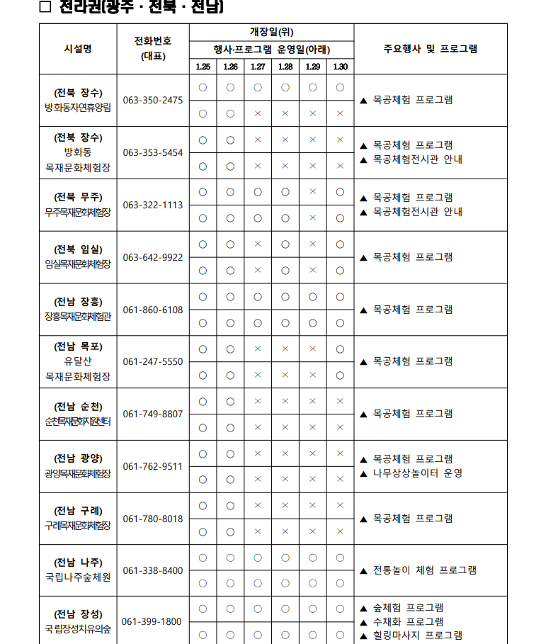 합천목재문화체험장 (1.25.~1.30.)