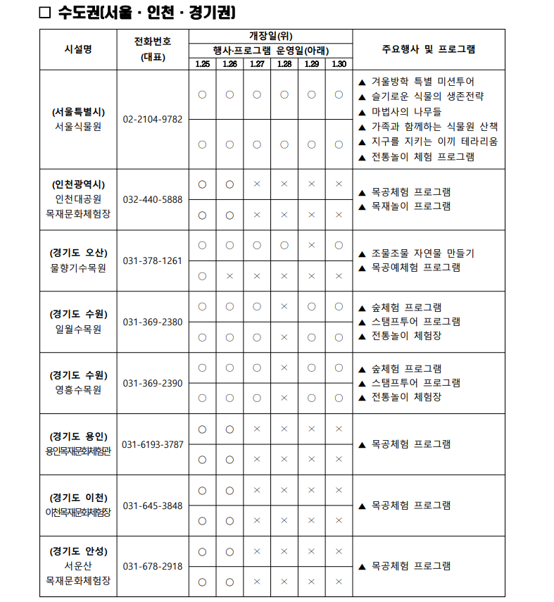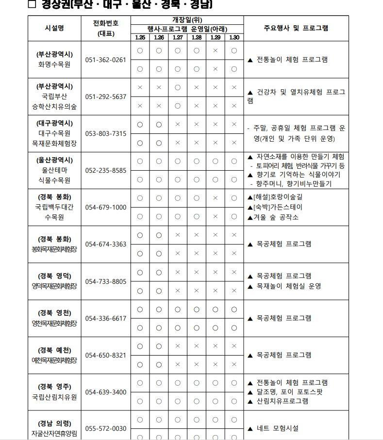 상세한 일정, 장소, 연락처 등은 '산림청 홈페이지 > 알림정보 > 알립니다’에서 확인하실 수 있습니다. 가족과 함께 소중한 추억을 만들고, 자연과 하나 되는 시간을 가져보세요!
