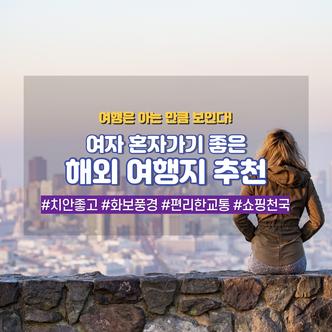 오늘은 아름답고 문화적으로 풍부할 뿐만 아니라 여자 혼자 가기 좋은 10개의 해외 여행지를 소개해 드리겠습니다.
