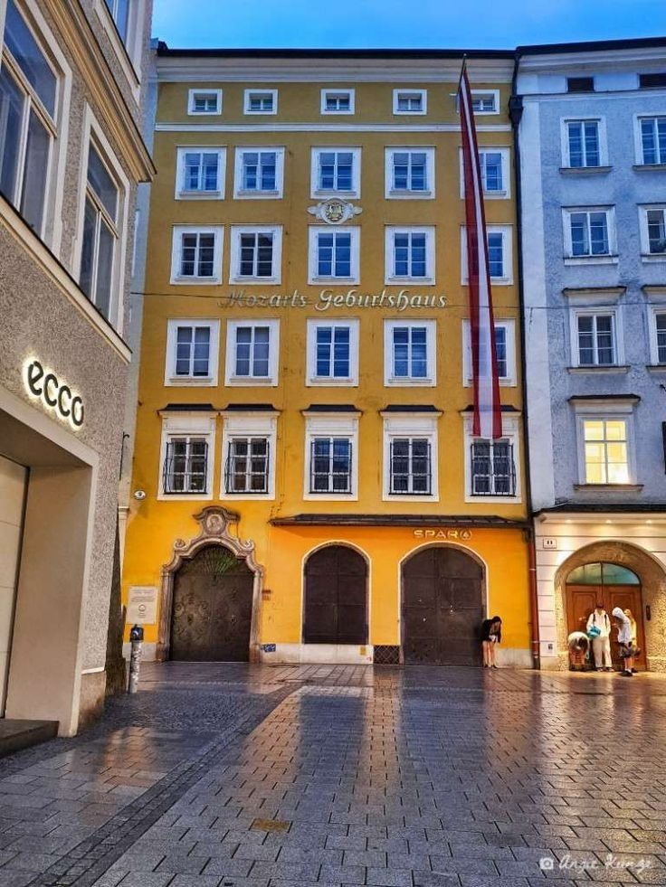 찰츠부르크에서 가장 북적이는 번화가인 게트라이데 거리 중간에는 역사상 가장 위대한 작곡가 중 한 명인 볼프강 아마데우스 모차르트의 생가가 있습니다. 진한 노란색 5층짜리 건물에서 모차르트는 17세까지 살며 작곡을 하며 지냈다고 합니다. 가족 초상화, 악기, 개인적인 기념품들로 장식된, 이 음악 신동의 어릴 적 삶을 엿볼 수 있는 세심하게 보존된 방들을 감상할 수 있습니다. 그가 처음 숨을 들이마신 바로 그 자리에 서 있다는 것만으로도 가슴이 벅차오릅니다.