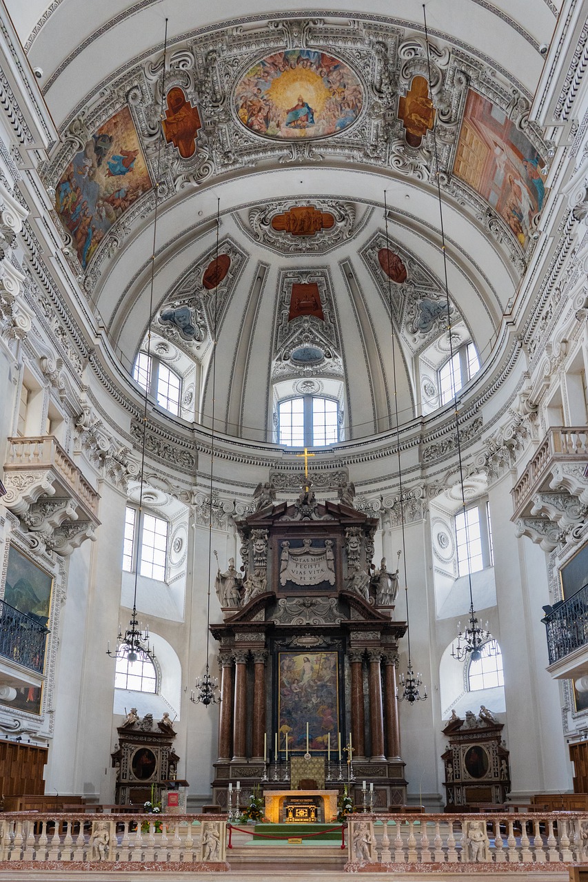 바로크 건축의 걸작인 잘츠부르크 대성당의 웅장함에 감탄할 준비를 하세요. 정교한 장식과 쌍둥이 탑으로 장식된 웅장한 정면은 잘츠부르크의 상징으로 서 있다. 안으로 들어가서 화려한 프레스코화, 정교한 조각품, 금박 장식으로 장식된 내부의 천상의 아름다움에 다시 한번 놀랄 것입니다. 뛰어난 음질로 유명한 레지덴츠 오르간은 특별한 공연을 할 때 멜로디 음으로 공기를 채웁니다. 모차르트의 세례 서체가 있는 지하실을 방문하는 것을 잊지 마세요.
