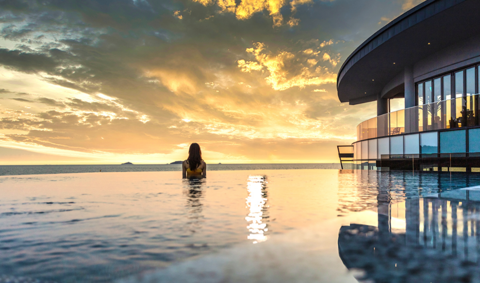 태안 바다와 맞닿은 인피니티 풀에서 지하 420m 암반수로 즐기는 노천온천! “꽃지해변”의 아름다운 노을까지 감상할 수 있어요.