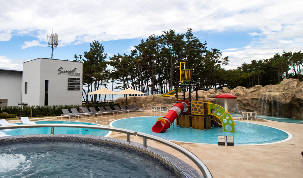 ● 가족 친화적 시설: 키즈풀, 파도풀, 슬라이드 등 온 가족이 함께 즐길 수 있는 공간