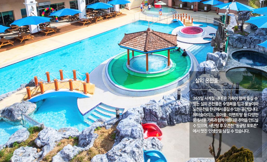 100% 도고온천수로 운영되는 실내외 온천과 테마 이벤트탕! 나이트스파가 특히 강추입니다.