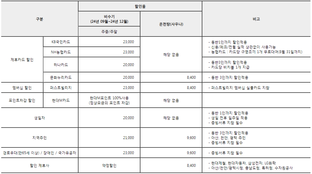 | 투숙객 | 사우나 20% / 스파 20% | 객실 정원에 한하여 적용 |