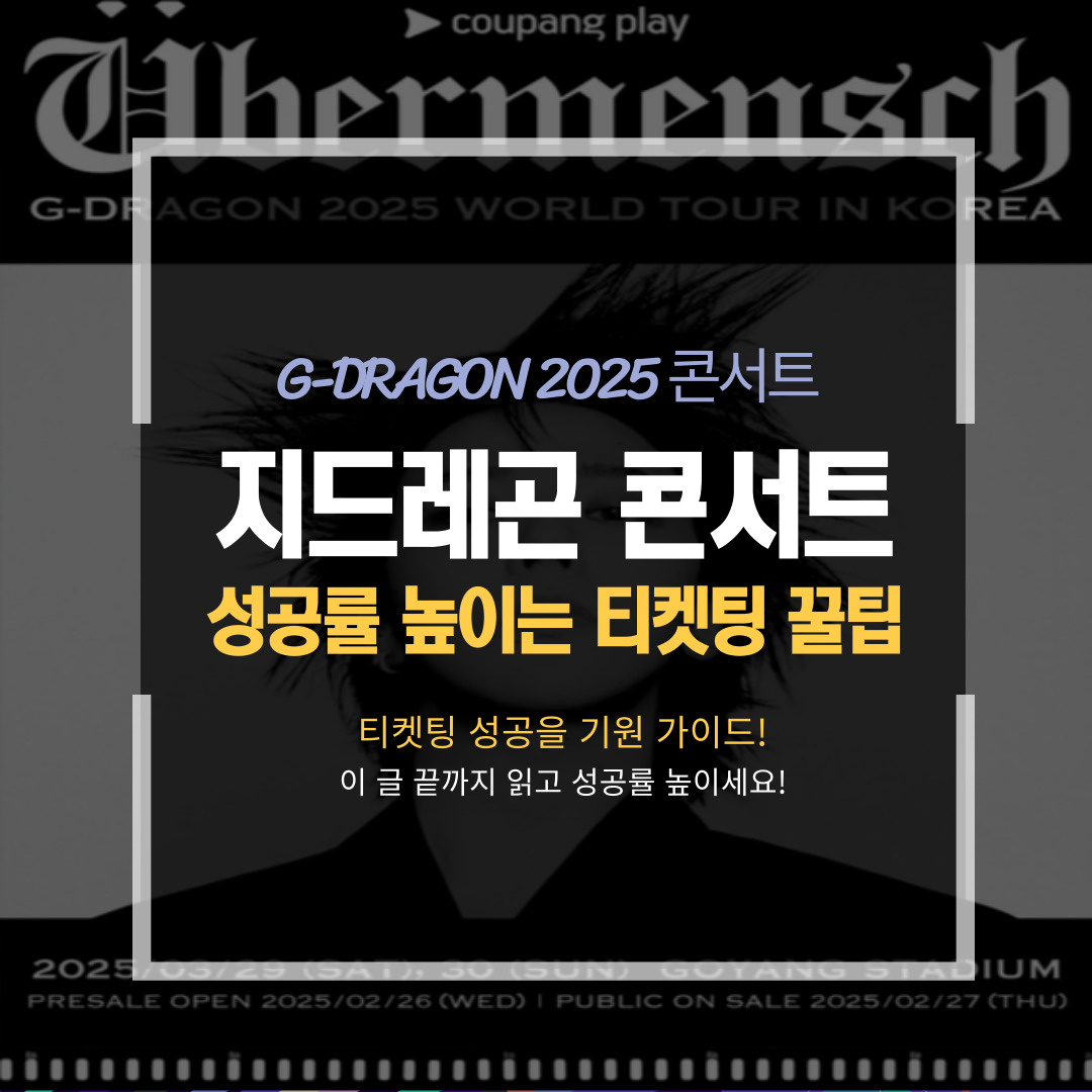 🌟 8년 만의 전설적인 무대! 바로 G-DRAGON의 2025 콘서트! 이런 콘서트는 특히 티켓팅 과정에서 철저한 준비가 필요합니다! 오늘은 콘서트 티켓팅 방법 & 꿀팁에 대해 정리해 보았습니다. 티케팅 성공을 기원합니다!