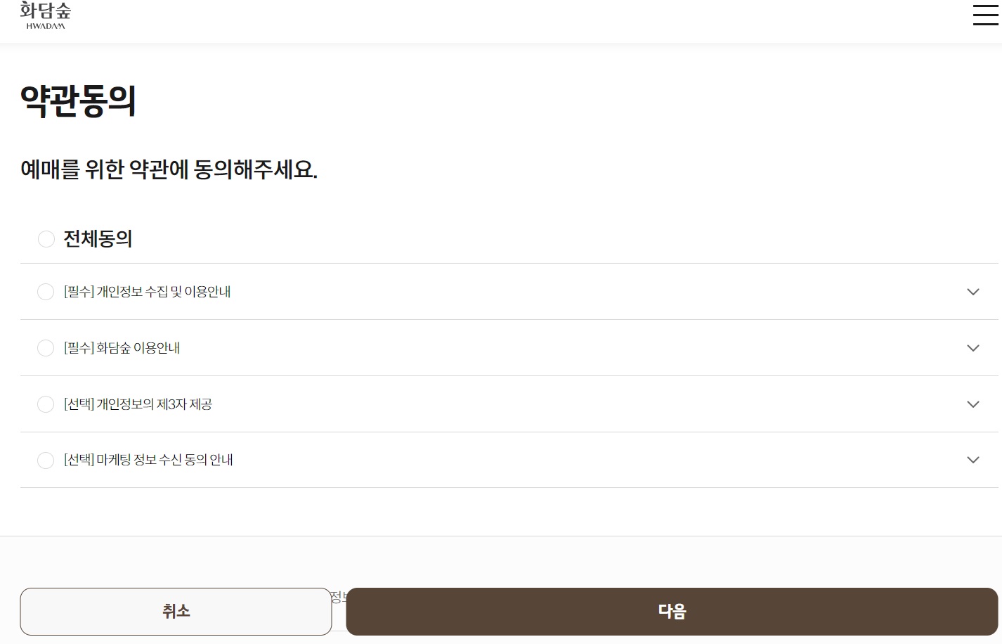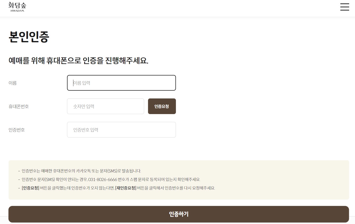 화담숲 예매하기 - 약관동의하기 - 휴대폰 본인인증