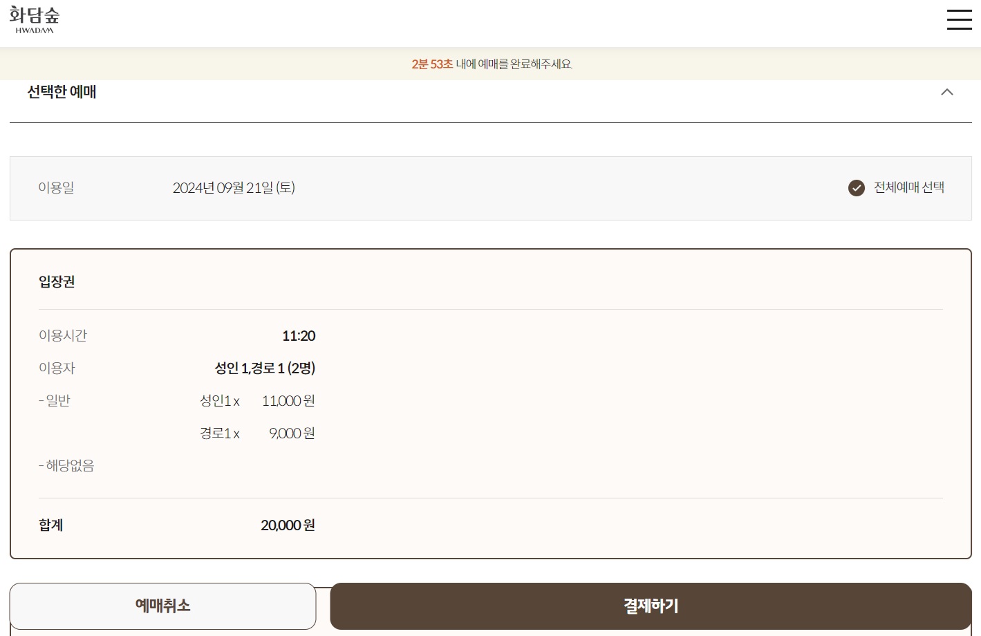 모노레일과 화담채는 예약 시 선택사항입니다.
